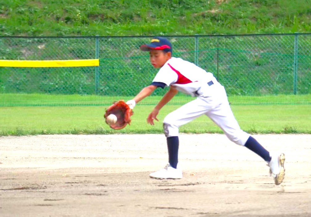 親子試合後、河西監督へ最後のノックを志願した卒団生。